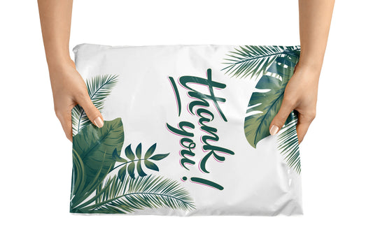 Poly Mailers 100 pcs 10x13 inch, Thank You Tropical Leaves Packaging Bags with Self Adhesive Strip 2.35 Mil Durable Mailing Envelopes for Shipping Multipurpose, Waterproof and Tear Proof