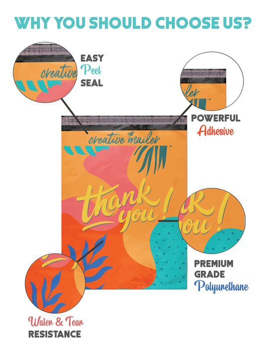 Creative Poly Mailers 10x13 inch 100 pcs, Shipping Bags, Thank You Floral Fur Packaging Bags with Self Adhesive Strip, 2.35 Mil Durable Mailing Envelopes for Shipping Multipurpose